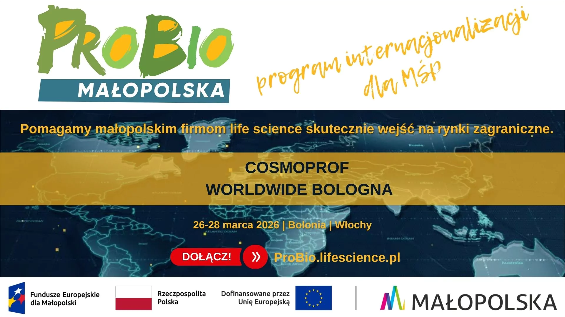 ProBio Małopolska 3.0 to nowa edycja wsparcia dla małopolskich MŚP i startupów z sektora life science, ukierunkowana na internacjonalizację działalności poprzez warsztaty, partnering i misje gospodarcze.
